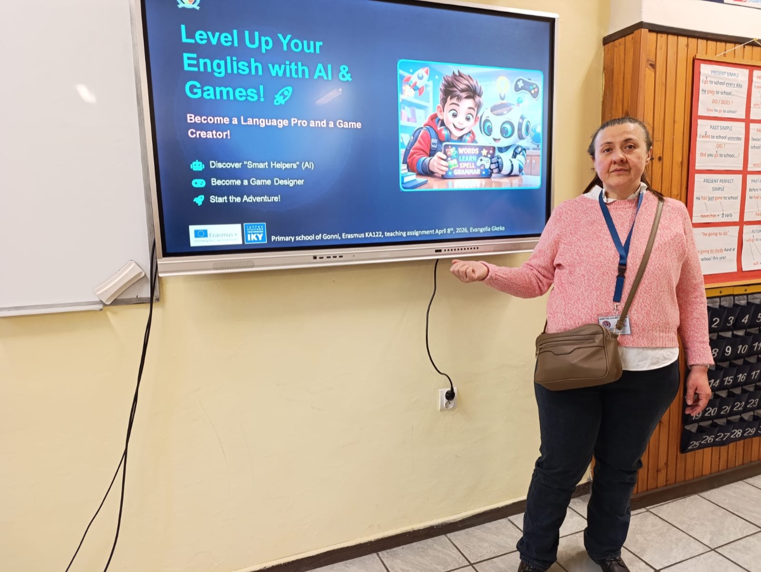 Στην κινητικότητα συμμετείχε η εκπαιδευτικός Αγγλικής Γλώσσας του Δημοτικού Σχολείου Γόννων, Ευαγγελία Γκέκα, η οποία υλοποίησε Εργασία Διδασκαλίας (Teaching Assignment) με θέμα «Πολυπολιτισμικότητα και Καινοτόμες Προσεγγίσεις στην Εκπαίδευση με χρήση ΤΠΕ».
