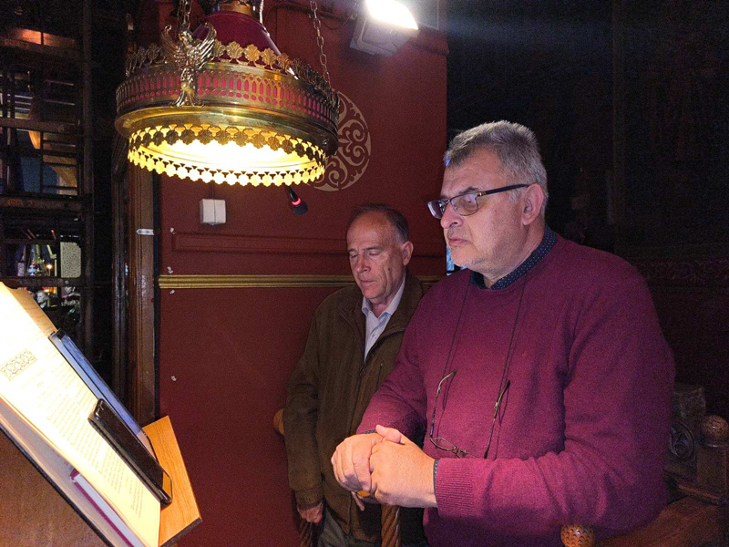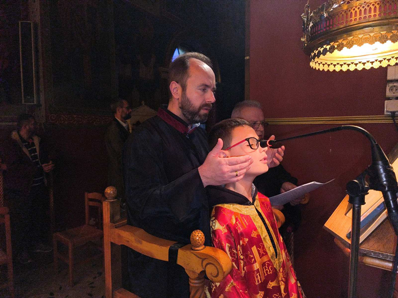Σήμερα το απόγευμα τελέστηκε ο Μέγας Αρχιερατικός Πανηγυρικός Εσπερινός, χοροστατούντος του Σεβασμιωτάτου Μητροπολίτη Λαρίσης και Τυρνάβου κ. Ιερωνύμου, συνοδευόμενος από ιερείς του Δήμου. Ξεχωριστό τόνο στη λατρευτική σύναξη έδωσαν οι εξαιρετικοί ιεροψάλτες, οι οποίοι με τις μελωδικές τους φωνές απέδωσαν τα τροπάρια του Αγίου, μεταφέροντας το πνεύμα της βυζαντινής παράδοσης στους παρευρισκόμενους πιστούς.