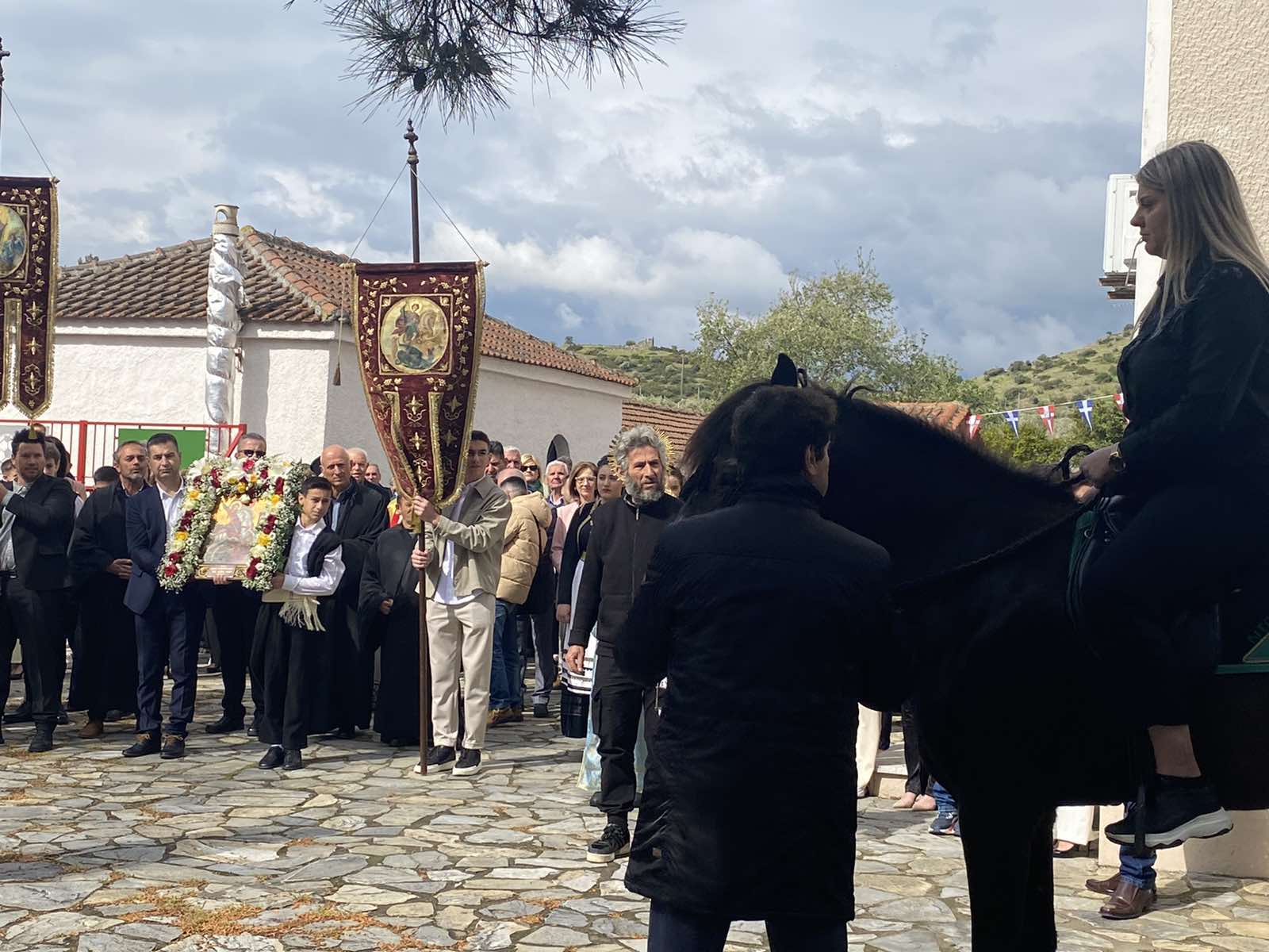 Σήμερα οι καβαλάρηδες τιμούν τον Άγιο Γεώργιο στους Γόνους του δήμου Τεμπών της Λάρισας, προστάτη του χωριού, περιφέροντας την ανθοστόλιστη εικόνα του στους κεντρικούς δρόμους.