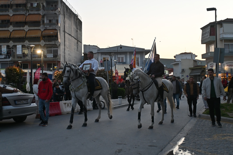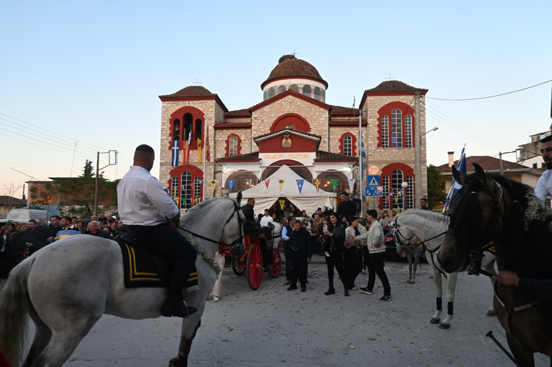 Μεγαλειώδης λιτάνευση στον Άγιο Γεώργιο Τυρνάβου: Άλογα, αμαξάδες και στρατιωτικοί τίμησαν τον Τροπαιοφόρο