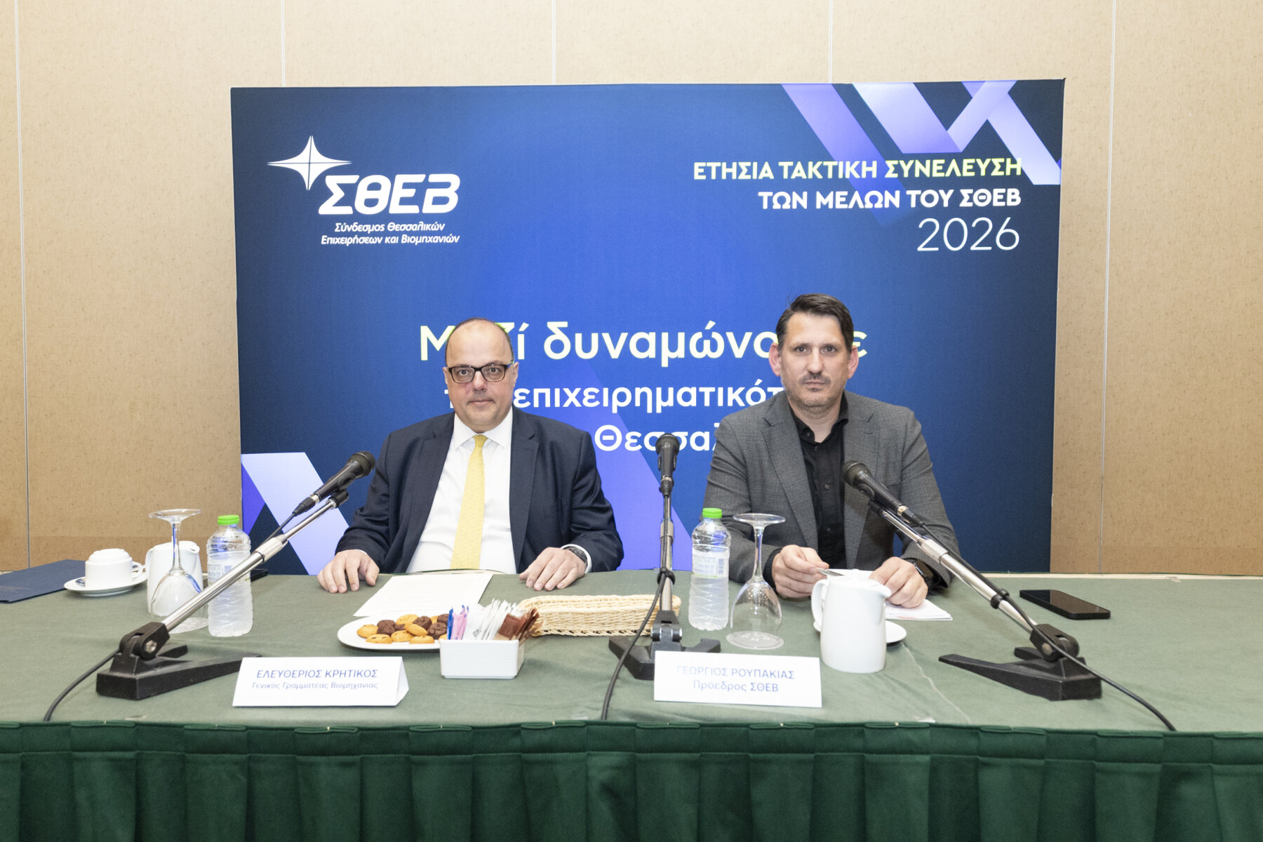 Πραγματοποιήθηκε την Τρίτη 21 Απριλίου η κλειστή συνεδρίαση της Ετήσιας Τακτικής Γενικής Συνέλευσης των μελών του ΣΘΕΒ, στη Λάρισα παρουσία στο δεύτερο μέρος του Γενικού Γραμματέα Βιομηχανίας, κ. Ελευθέριου Κρητικού.