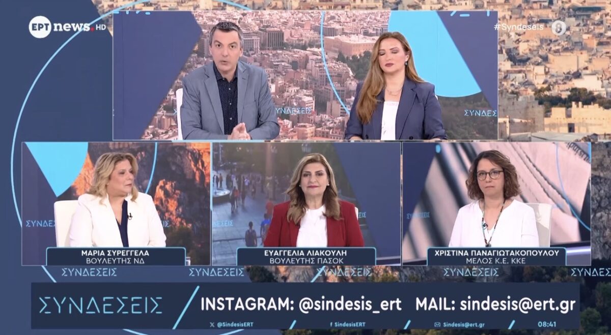 Για τα πολύ σοβαρά ζητήματα που άπτονται του Κράτους Δικαίου στην Ελλάδα, καθώς και για τη διαφθορά σε κρίσιμους τομείς της δημόσιας ζωής, τοποθετήθηκε ως καλεσμένη στην εκπομπή «Συνδέσεις» του τηλεοπτικού σταθμού ERTNews, η Τομεάρχης Δικαιοσύνης, Θεσμών και Διαφάνειας του ΠΑΣΟΚ–Κινήματος Αλλαγής και Βουλευτής Λάρισας, Ευαγγελία Λιακούλη, με τους δημοσιογράφους Κώστα Παπαχλιμίντζο και Κατερίνα Δούκα.