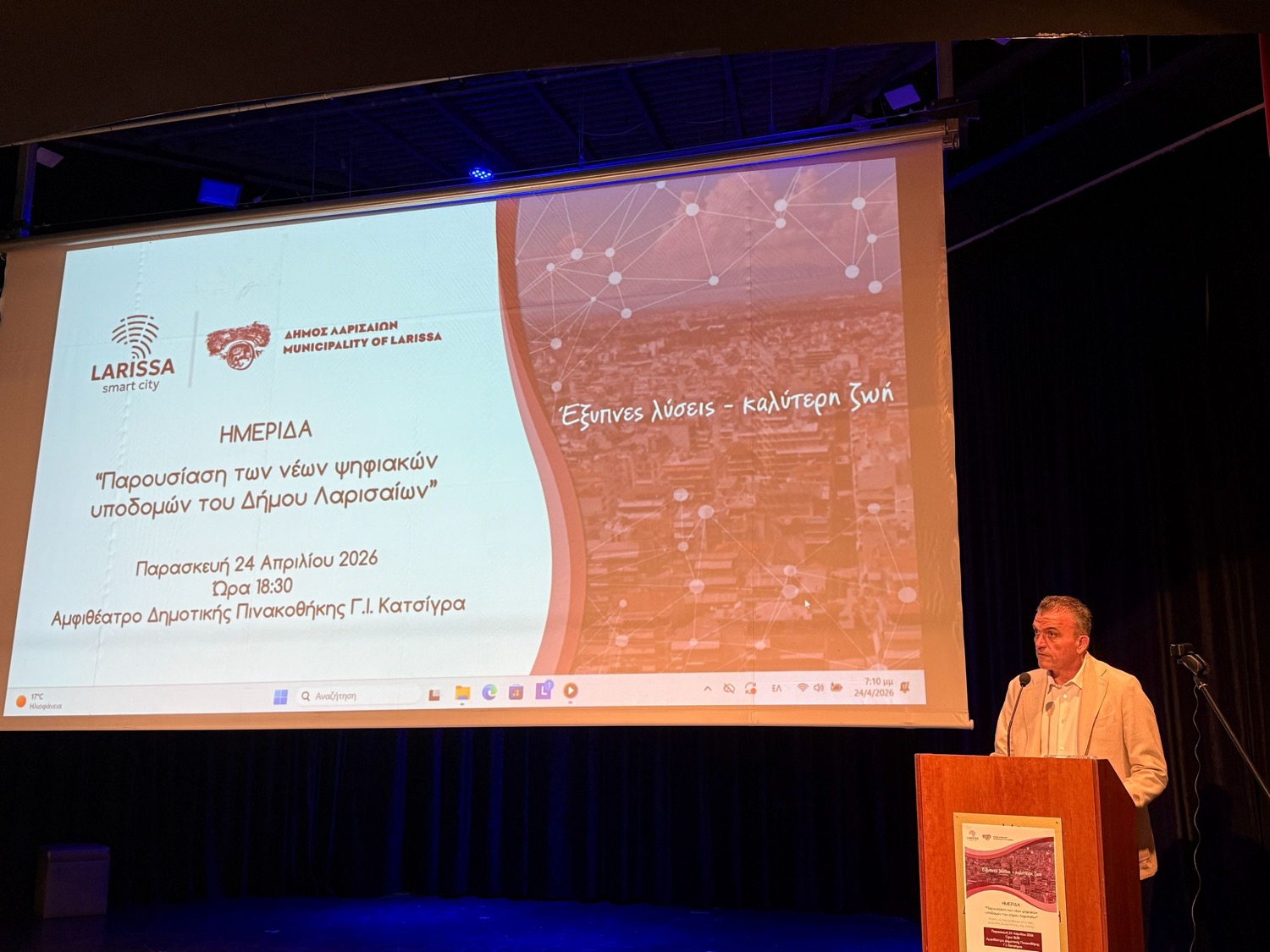 Τα νέα ψηφιακά εργαλεία που υιοθετεί και οι εφαρμογές που αναπτύσσει ο Δήμος Λαρισαίων παρουσιάστηκαν το απόγευμα της Παρασκευής, 26 Απριλίου. Πρόκειται για εργαλεία που έχουν αναπτυχθεί στο πλαίσιο του έργου «Έξυπνη Πόλη Λάρισα», που ολοκληρώνεται και εγκαινιάζει σειρά ψηφιακών λειτουργιών και δυνατοτήτων, που αναδιαμορφώνουν τη διάδραση των πολιτών με τον Δήμο και ενισχύουν τη διαφάνεια και την εμπιστοσύνη.