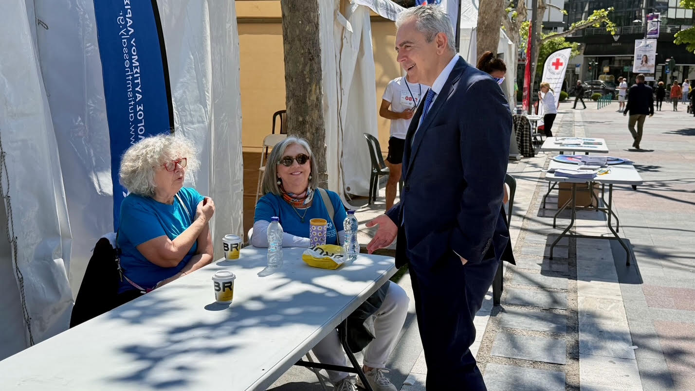 Την παραμονή επισκέφθηκε τα περίπτερα φορέων και συλλόγων που συμμετείχαν στη Δράση Αλληλεγγύης και συνομίλησε με ανθρώπους του εθελοντικού κινήματος της πόλης και του νομού. Άκουσε απόψεις, θέσεις, προτάσεις αλλά και τους προβληματισμούς των ανθρώπων που αποτελούν το ζωντανό παράδειγμα της προσφοράς στον συνάνθρωπο.