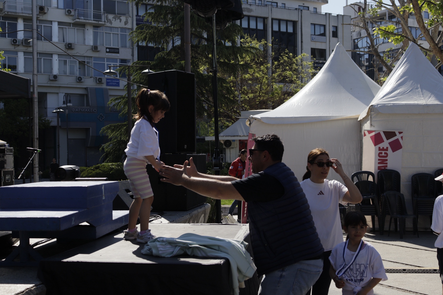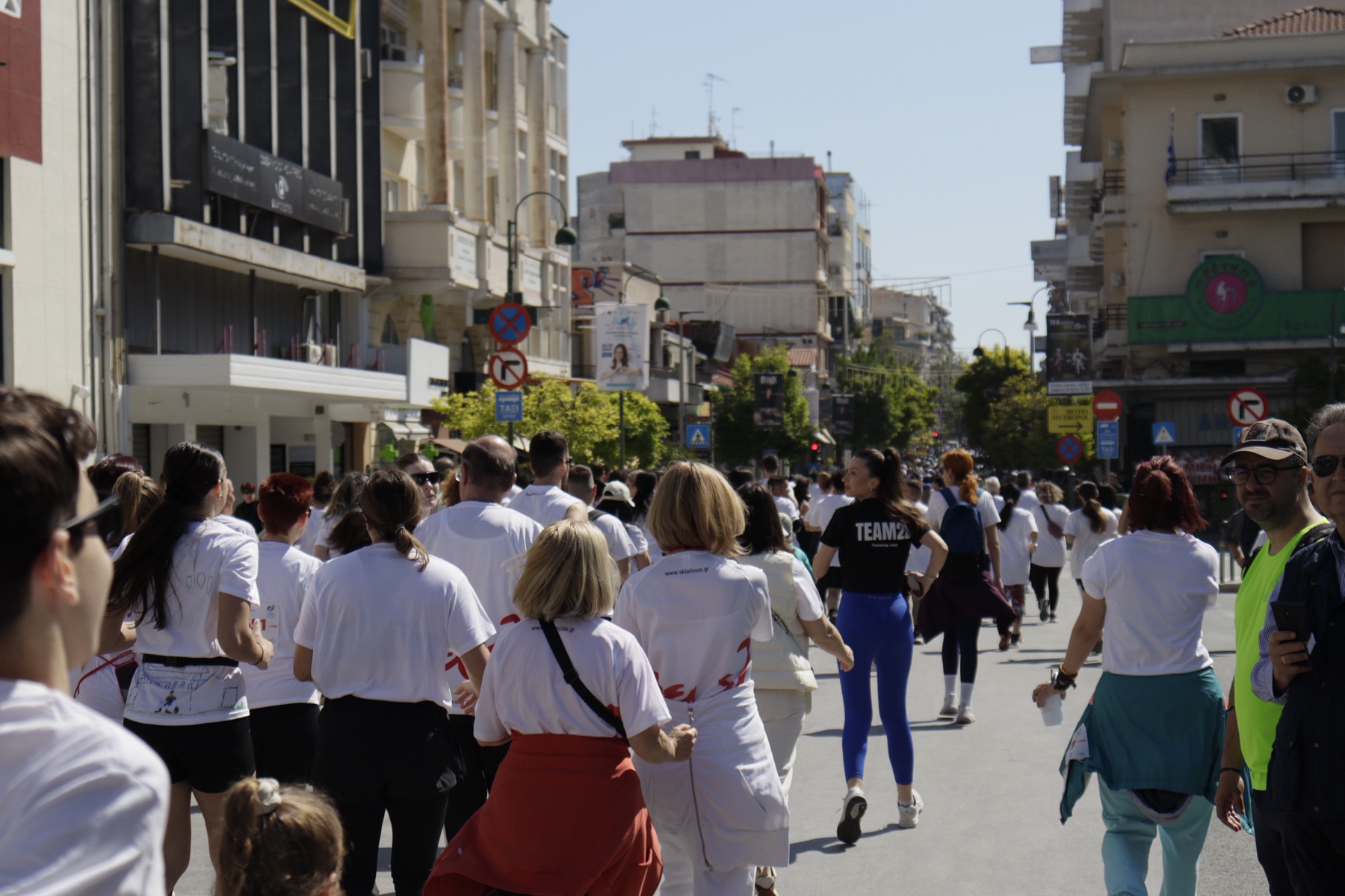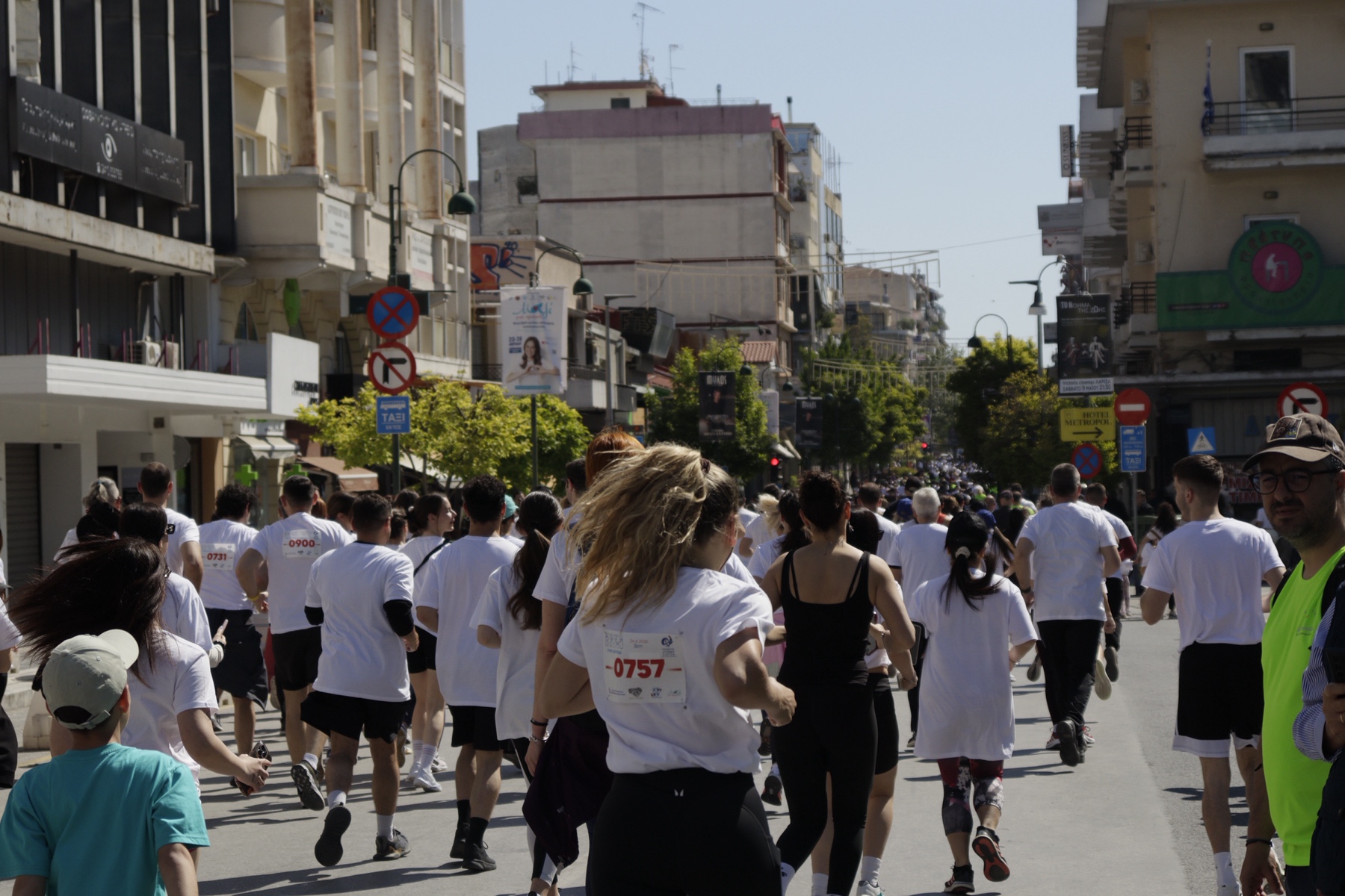 Στις 10 το πρωί ξεκίνησε ο αγώνας 1 χλμ, με σημείο εκκίνησης και τερματισμού την Κεντρική πλατεία Λάρισας (στο ύψος του κτιρίου της Λέσχης Αξιωματικών). Διαδρομή: Κεντρική Πλατεία, Κύπρου, Αμαλίας, Βενιζέλου, Παπαναστασίου, Κύπρου, Κεντρική Πλατεία.