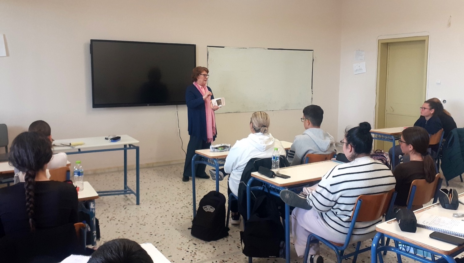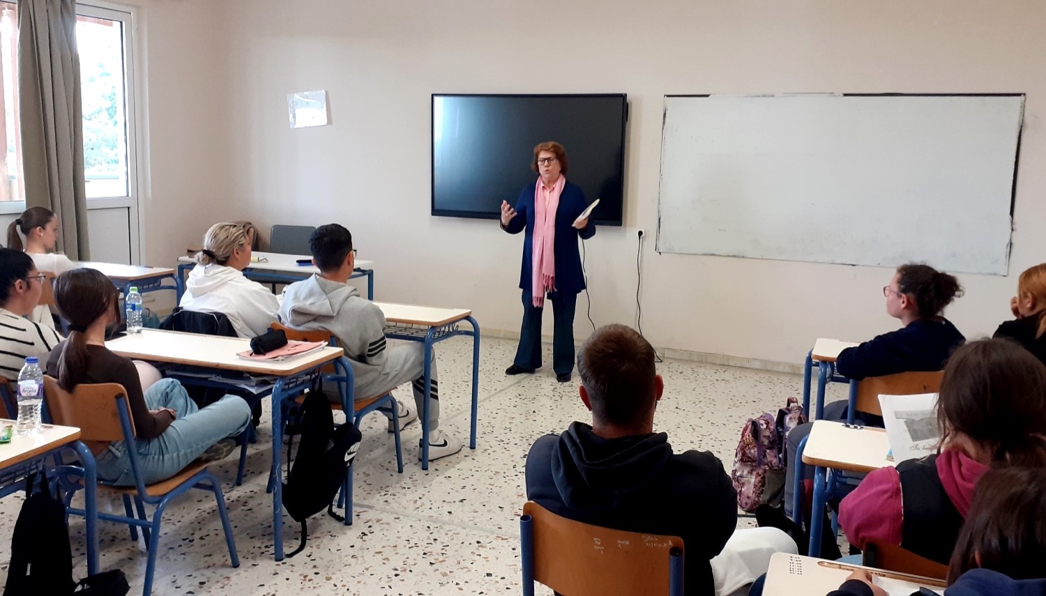 Ακολούθησε συζήτηση με μαθητές και μαθήτριες του σχολείου, οι οποίοι έδειξαν ιδιαίτερο ενδιαφέρον και τους ανέφερε τα προβλήματα που πρέπει να υπερβεί κάποιος, μέχρι να εκδοθεί ένα βιβλίο του. Αγαπούσε το διάβασμα από μικρή και αυτός ήταν ο κύριος λόγος που έγινε και εκπαιδευτικός. Φωτογραφήθηκε με τα παιδιά και στο τέλος, χάρισε ένα αντίτυπο του βιβλίο της στην βιβλιοθήκη του σχολείου.
