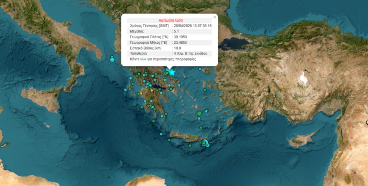 Νέος – πιο ισχυρός σεισμός στη Σκιάθο: Αισθητός και στη Λάρισα