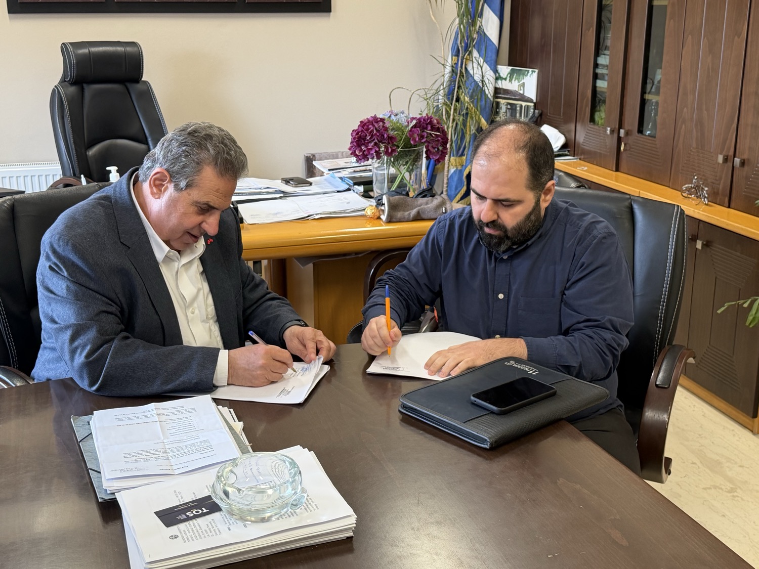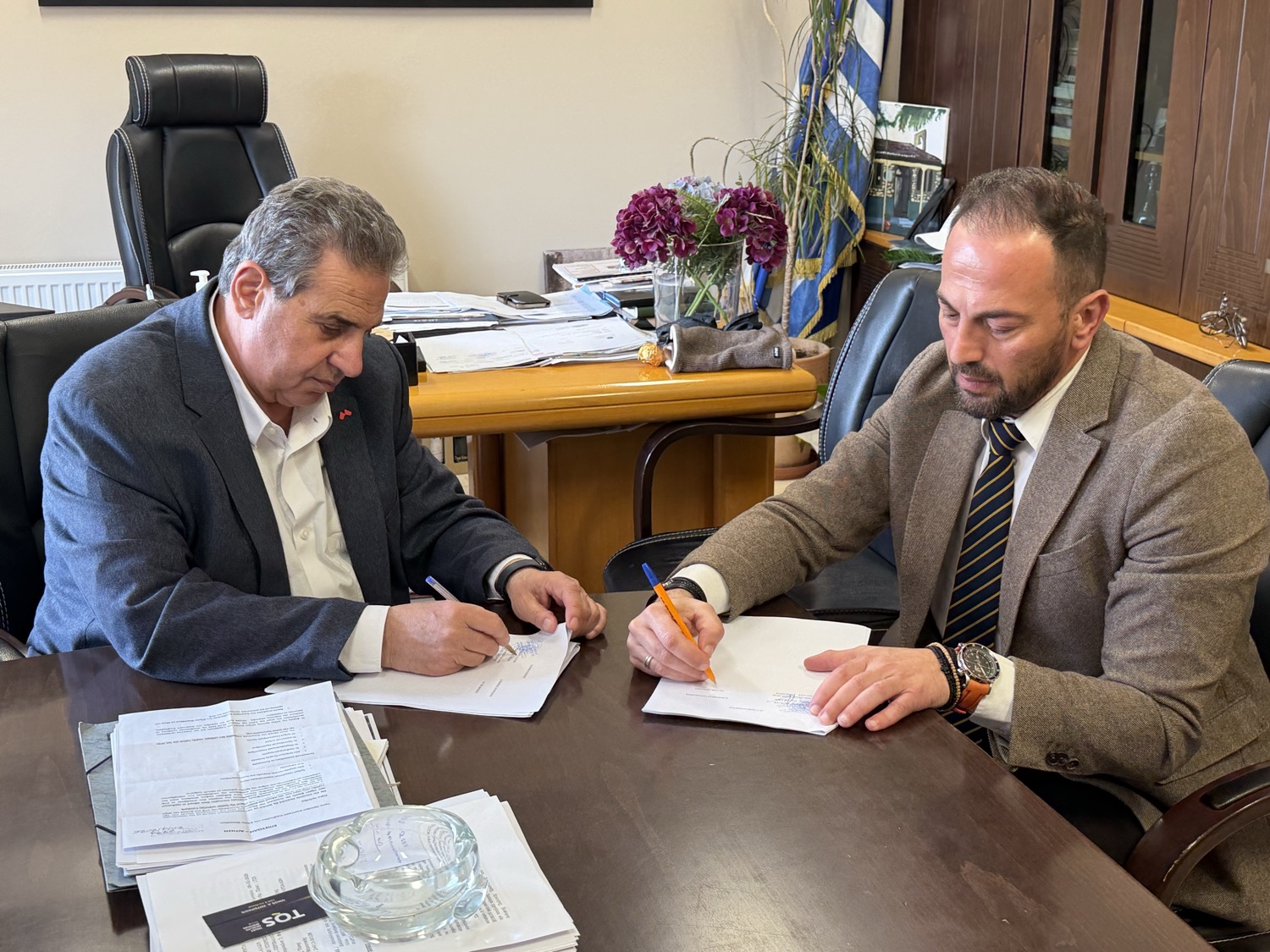 Στην υπογραφή των συμβάσεων για μια σειρά κρίσιμων έργων αποκατάστασης προχώρησε ο Δήμαρχος Φαρσάλων και πρόεδρος της ΔΕΥΑΦ κ. Μάκης Εσκίογλου, με στόχο την επαναφορά και τη θωράκιση των υποδομών ύδρευσης στον Δήμο Φαρσάλων, που υπέστησαν εκτεταμένες ζημιές από τα ακραία καιρικά φαινόμενα του Σεπτεμβρίου 2023.
