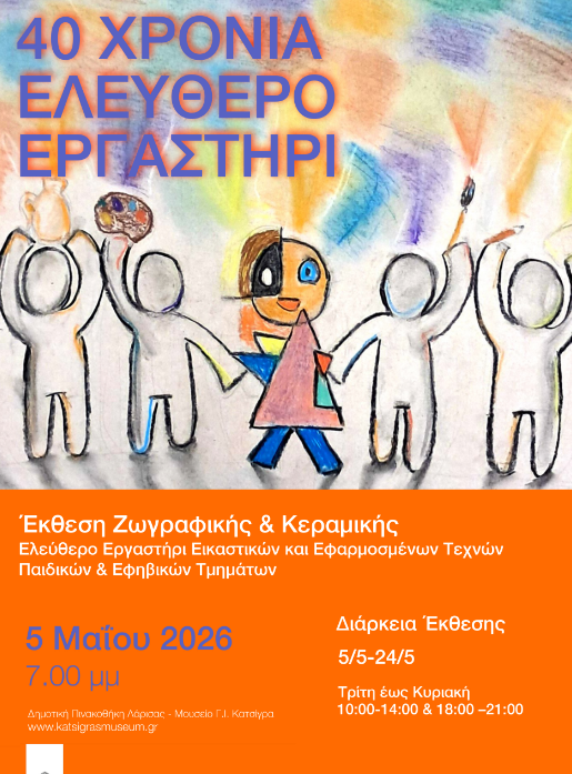 Η έκθεση παιδιών και εφήβων με τίτλο «1986-2026: 40 χρόνια ΕΛΕΥΘΕΡΟ ΕΡΓΑΣΤΗΡΙ» θα περιλαμβάνει ομαδικά έργα ζωγραφικής, κεραμικής, σχεδίου, κατασκευών και animation.