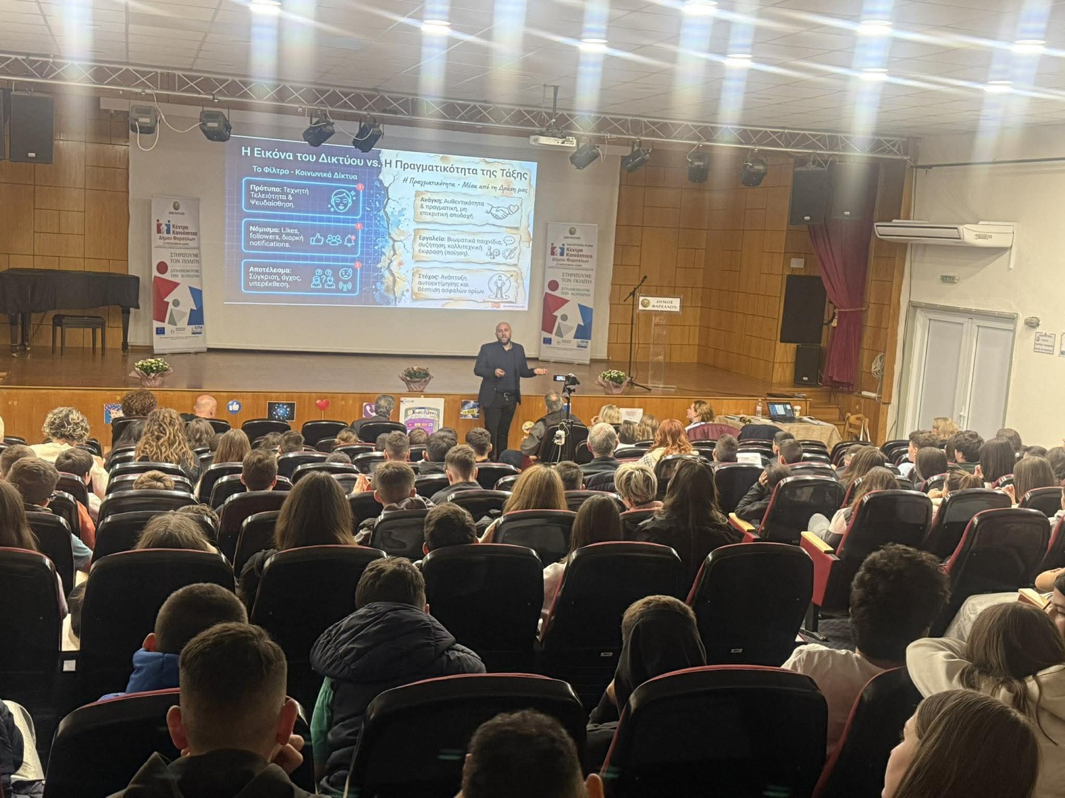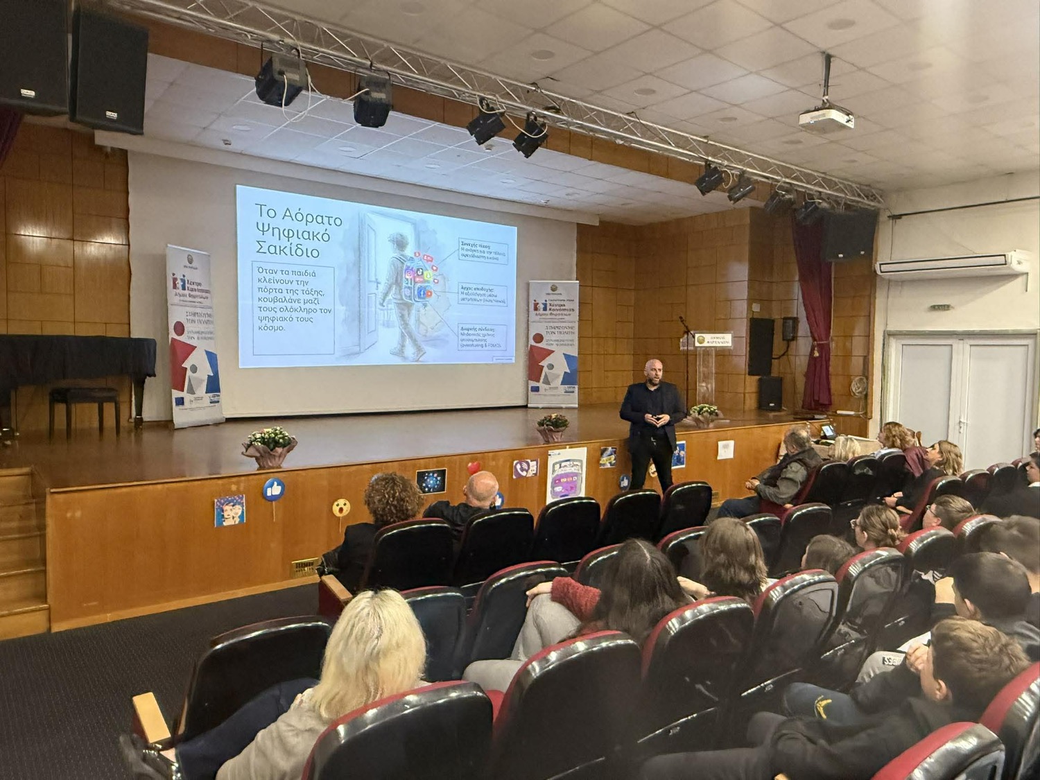 Ο κ. Καψάλης ανέπτυξε με σαφή και κατανοητό τρόπο τους βασικούς κινδύνους που ελλοχεύουν κατά την έκθεση των παιδιών στο διαδίκτυο, δίνοντας ιδιαίτερη έμφαση σε φαινόμενα όπως αυτό της αποπλάνησης ανηλίκων ενώ παράλληλα παρείχε χρήσιμες και πρακτικές συμβουλές για την ασφαλή πλοήγηση στο διαδίκτυο. Μέσα από παραδείγματα και διάλογο με τους μαθητές, ανέδειξε τη σημασία της υπεύθυνης χρήσης των κοινωνικών δικτύων και της προστασίας των προσωπικών δεδομένων.