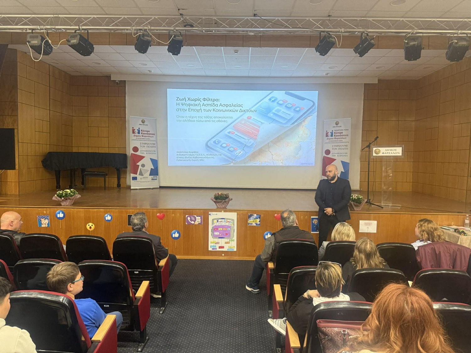 - Eισήγηση με τίτλο: «Ζωή Χωρίς Φίλτρο: Η Ψηφιακή Ασπίδα Ασφαλείας στην Εποχή των Κοινωνικών Δικτύων», από τον Απόστολο Καψάλη, Ανθυπαστυνόμο της Υ.Δ.Ε.Ε.Λ., σύνδεσμο της Διεύθυνσης Δίωξης Κυβερνοεγκλήματος και Cybersecurity Expert, MSc.
