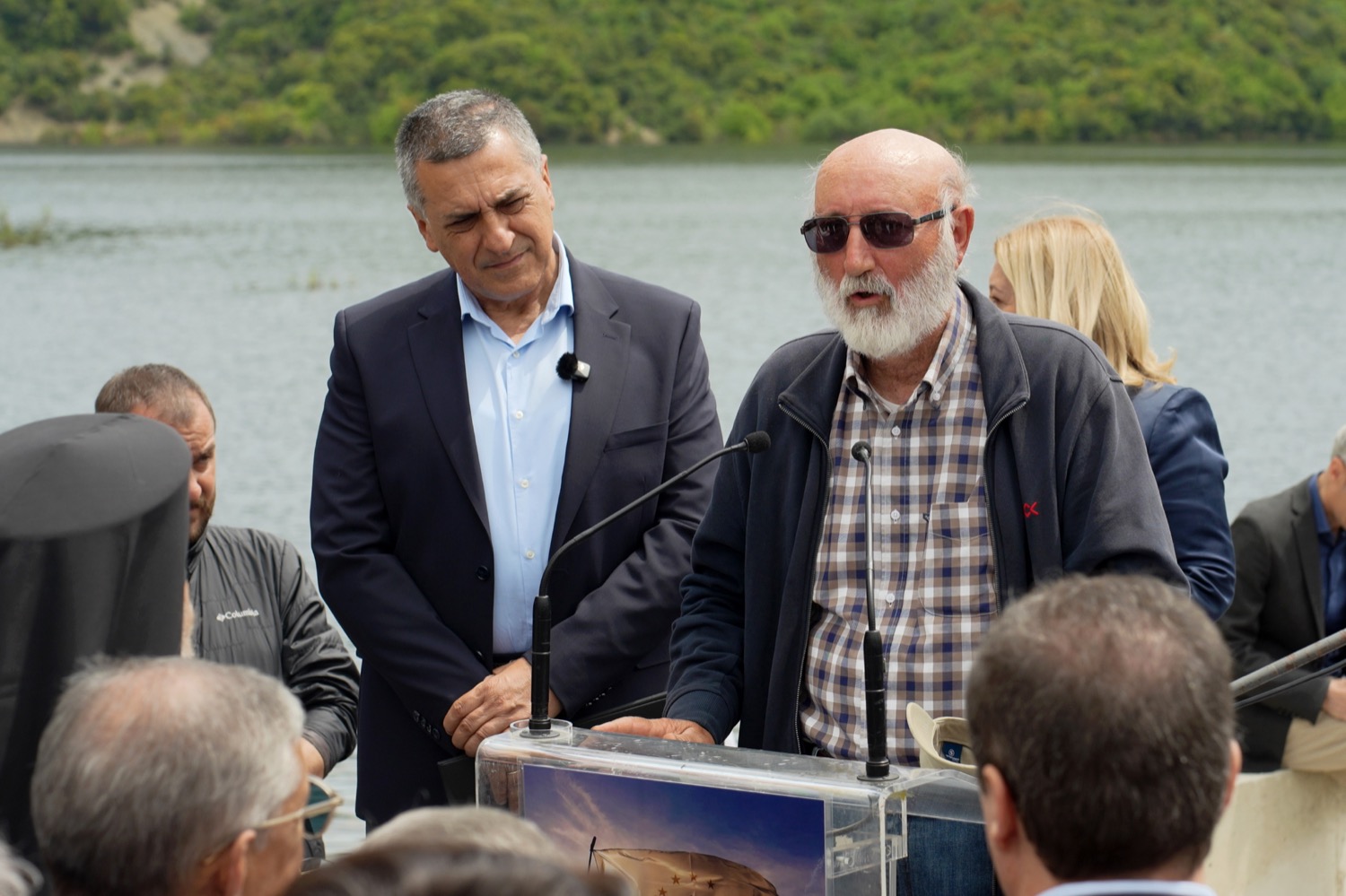 Ο πρώην Νομάρχης Τρικάλων Ηλίας Βλαχογιάννης με τη σειρά του έκανε μια ιστορική αναδρομή και αναφορά σε πρόσωπα που αγωνίστηκαν για να μπει το φράγμα σε τροχιά υλοποίησης, στις μάχες που δόθηκαν με τον έκπτωτο εργολάβο αλλά και με τον δεύτερο για να τρέξουν οι διαδικασίες, ενώ ευχαρίστησε τη Μονή Αγίου Στεφάνου για τη δωρεά της έκτασης, αλλά και τον Περιφερειάρχη Δημ. Κουρέτα για την τιμητική πρόσκληση να παραστούν όλοι όσοι προσέφεραν για την υλοποίηση του έργου.